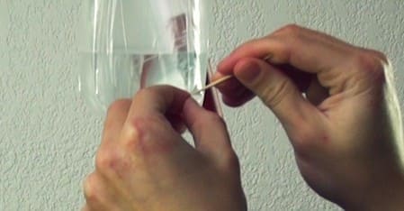 • D’un dispositif pour faire goutter l’eau : il peut s’agir d’un compte-gouttes ou d’une pipette. Si vous n’avez rien de cela, vous pouvez accrocher en l’air un sac plastique troué ou une bouteille trouée avec une épingle.